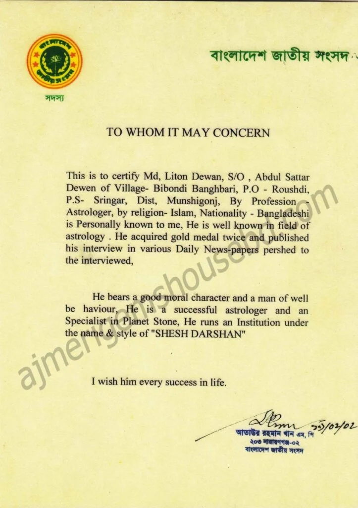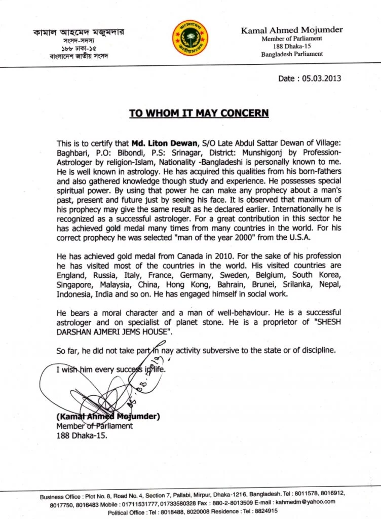 "তার দেওয়া পরামর্শে আংটি ব্যবহার করে এখন আমার আর্থিক, সামাজিক ও পারিবারিক সমস্যা দূর হয়েছে।"