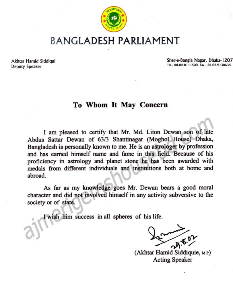 ব্যক্তি জীবনের সকল অস্থিরতা ও হতাশাগ্রস্থ জীবন থেকে মুক্তি পেতে সনামধন্য জ্যোতিষরাজ লিটন দেওয়ান চিশতী সাহেবের দর্শনে আসুন। সঠিকভাবে সঠিক রত্নপাথর কিনতে আজই চলে আসুন "আজমেরী জেমস হাউজে "। আমরা আমাদের প্রত্যেকটি রত্নপাথরে ১০০% অরিজিনাল নিশ্চয়তা দিয়ে থাকি।